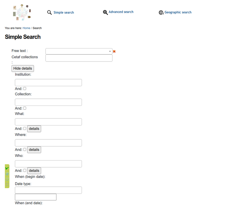 2. The embedded interface in the institution website developed at the Africa Museum. https://darwinweb.africamuseum.be/search_specimens Security: https for all connections.